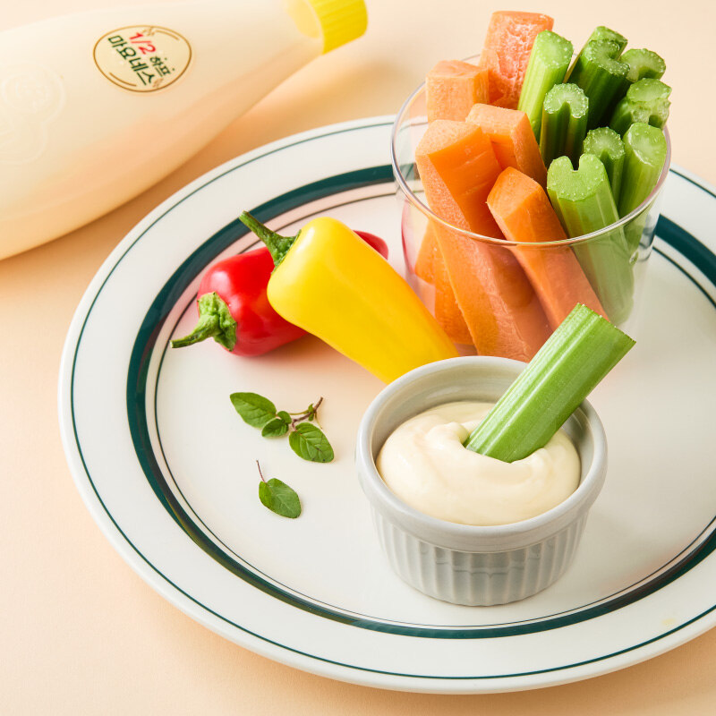 고소한 맛은 그대로, 지방은 50% 낮춘 1/2하프마요네스를 소개해요. 오뚜기 마요네스만의 고소한 맛은 그대로 살리고 지방은 반으로 낮춰 가볍게 즐길 수 있어요!