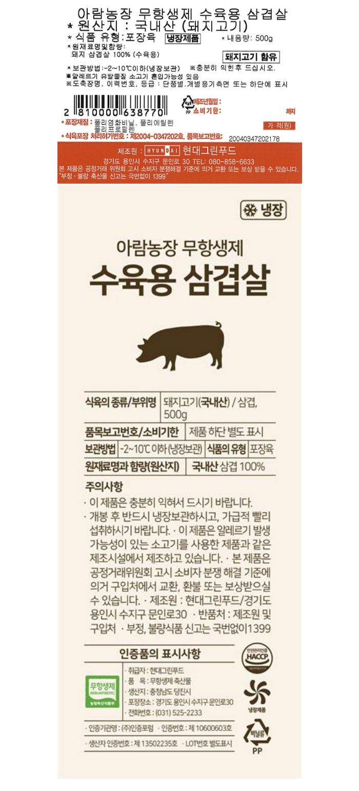 [사전예약] 아람농장 무항생제 삼겹 수육 (500g*2)