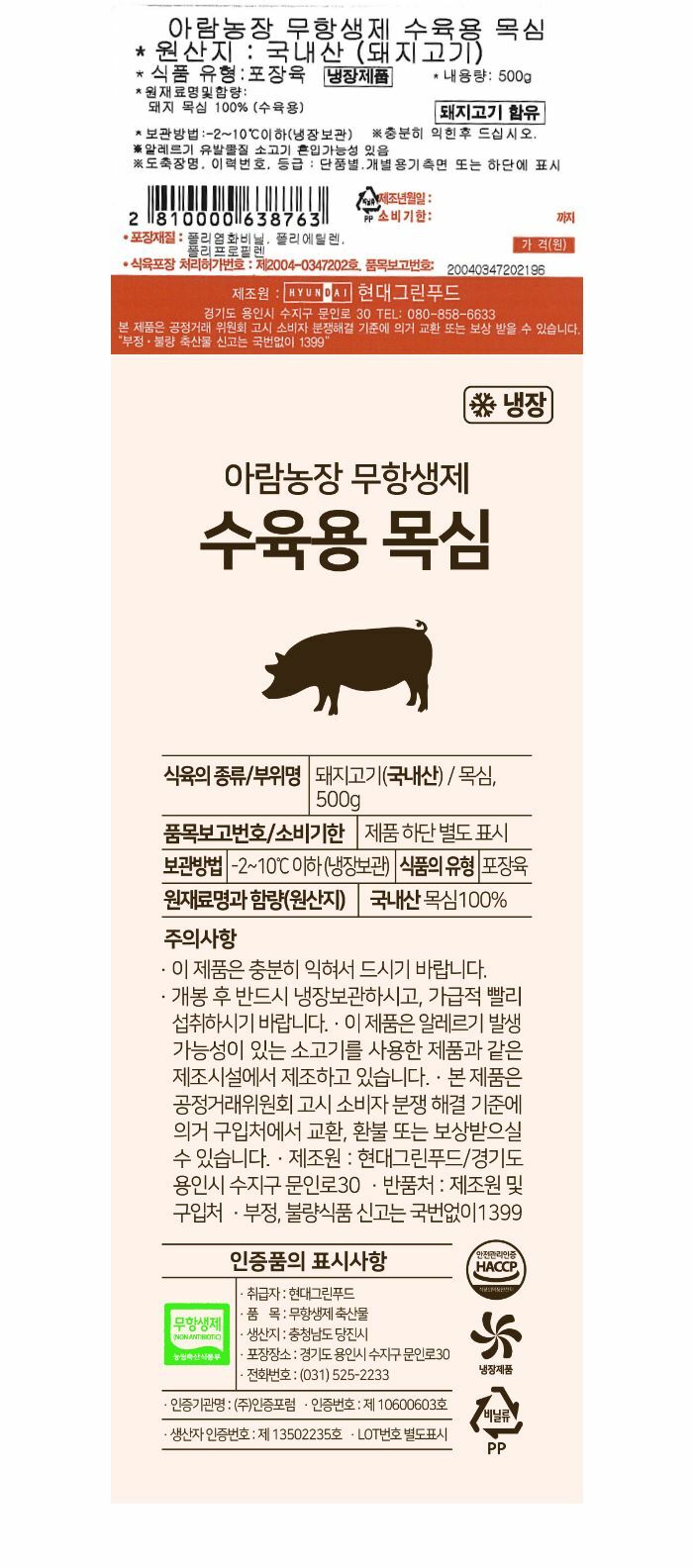 [사전예약] 아람농장 무항생제 목심 수육 (500g*2)