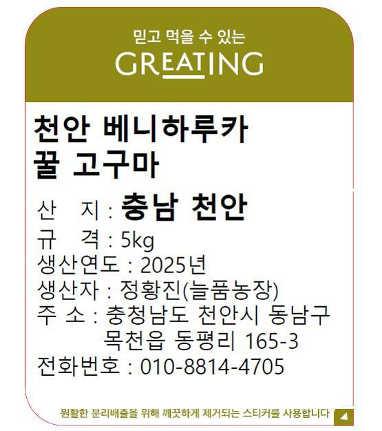 [사전예약] 천안 베니하루카 꿀 고구마 5kg