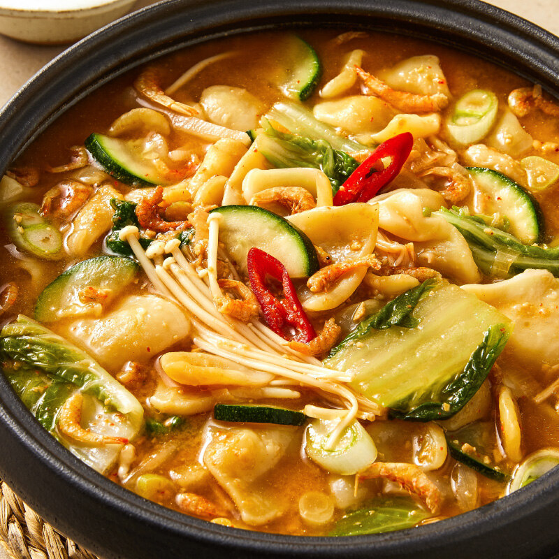 황해도에서 전해 내려온 구수한 한 그릇, 털레기 수제비예요. ‘털레기’는 '한데 털어 넣고 바글바글 끓인 요리'를 지칭하는 말로, 이북 지역에서는 생선, 고기 등 갖은 재료를 넣고 요리해요.