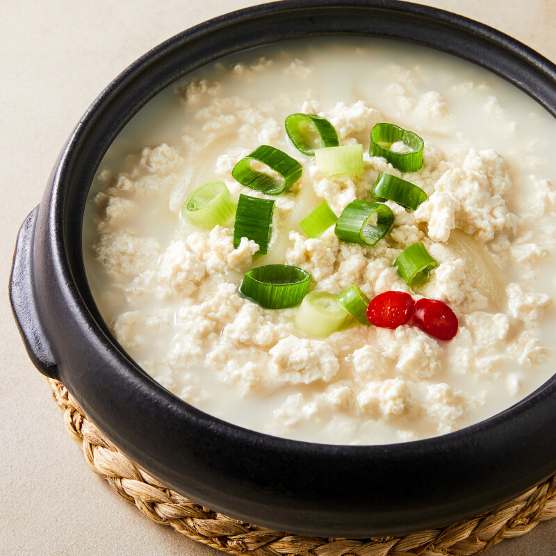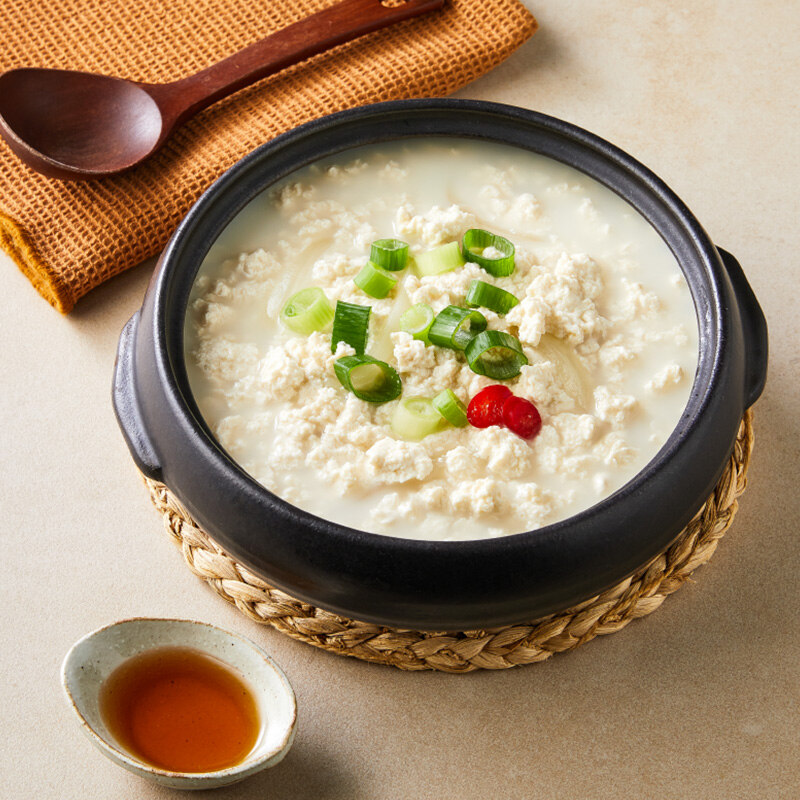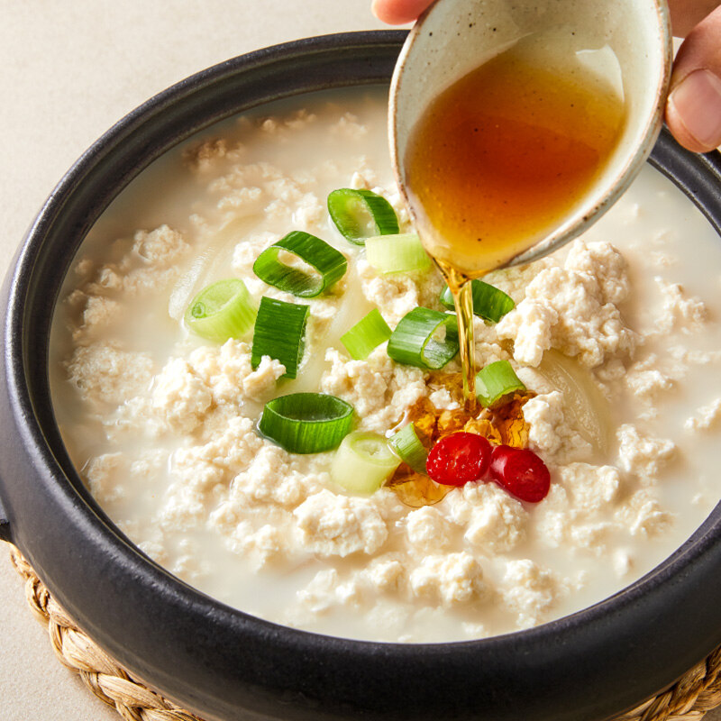 몽글몽글한 순두부의 맛을 오롯이 즐길 수 있는 하얀 강릉식 초당 순두부 찌개예요. 진한 양념 대신 통 순두부를 넣어 콩 본연의 구수한 맛과 부드러운 식감을 그대로 담았어요.