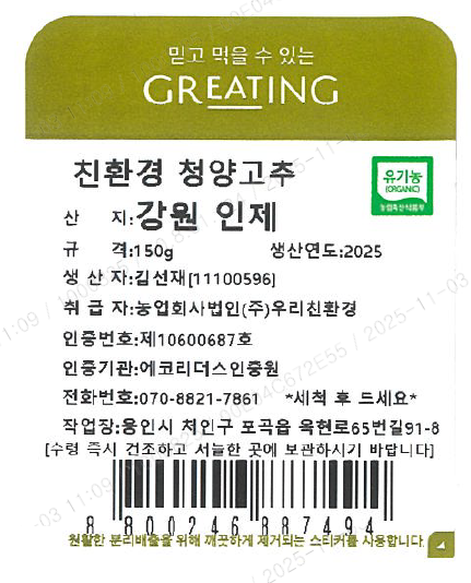 [그리팅] 친환경 청양고추 150g
