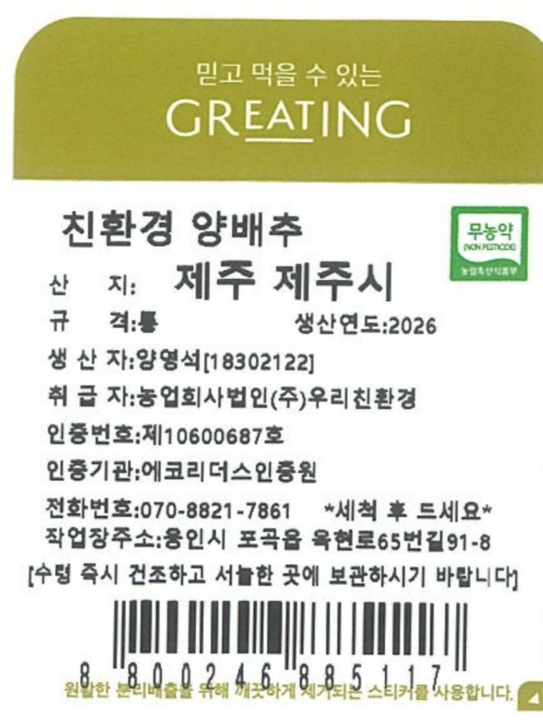 농약 없이 건강하고 정직하게 친환경으로 키워 낸 농부의 정성을 지금 그리팅에서 만나보세요.