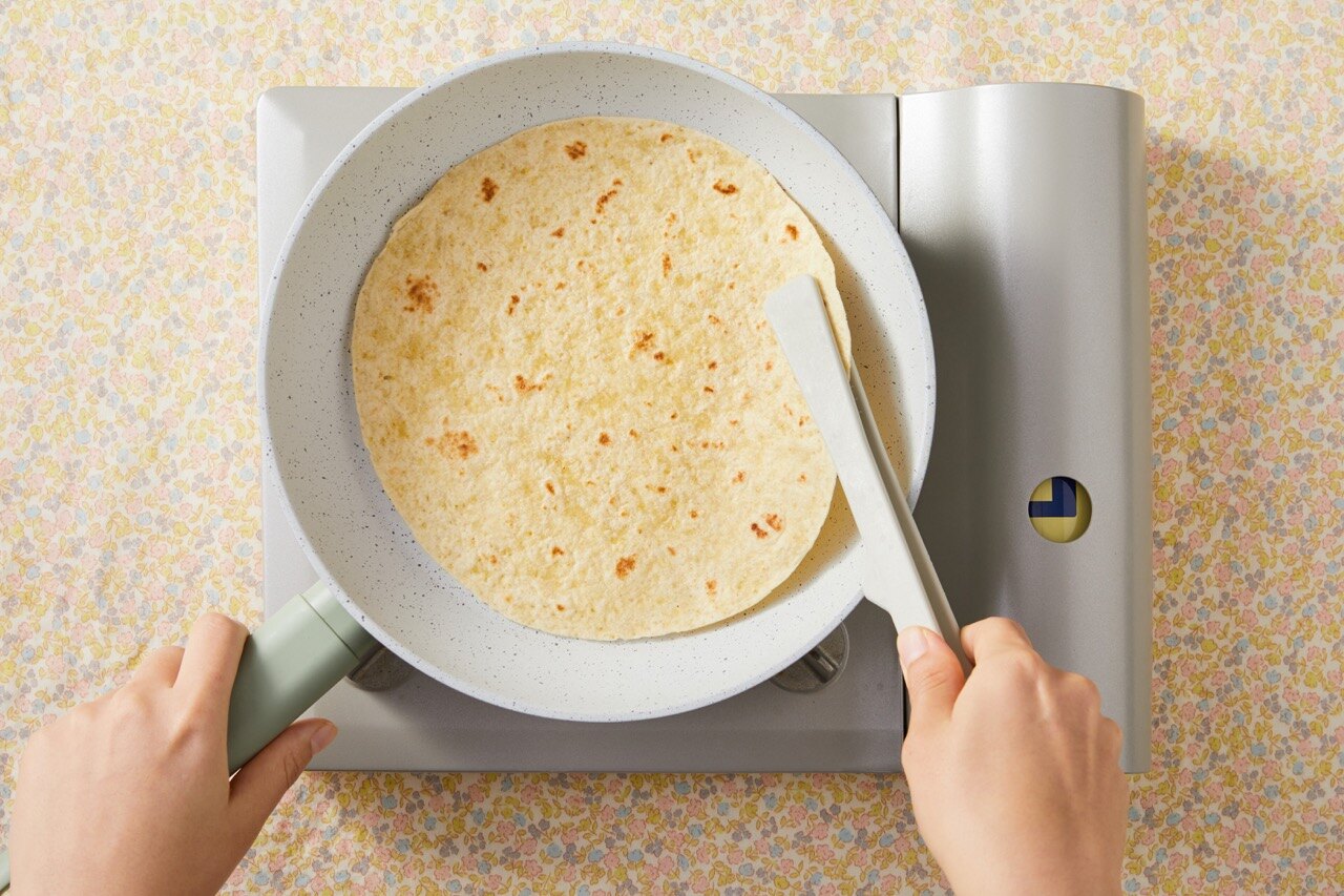 예열된 팬에 또띠아를 구워 준비해 주세요.