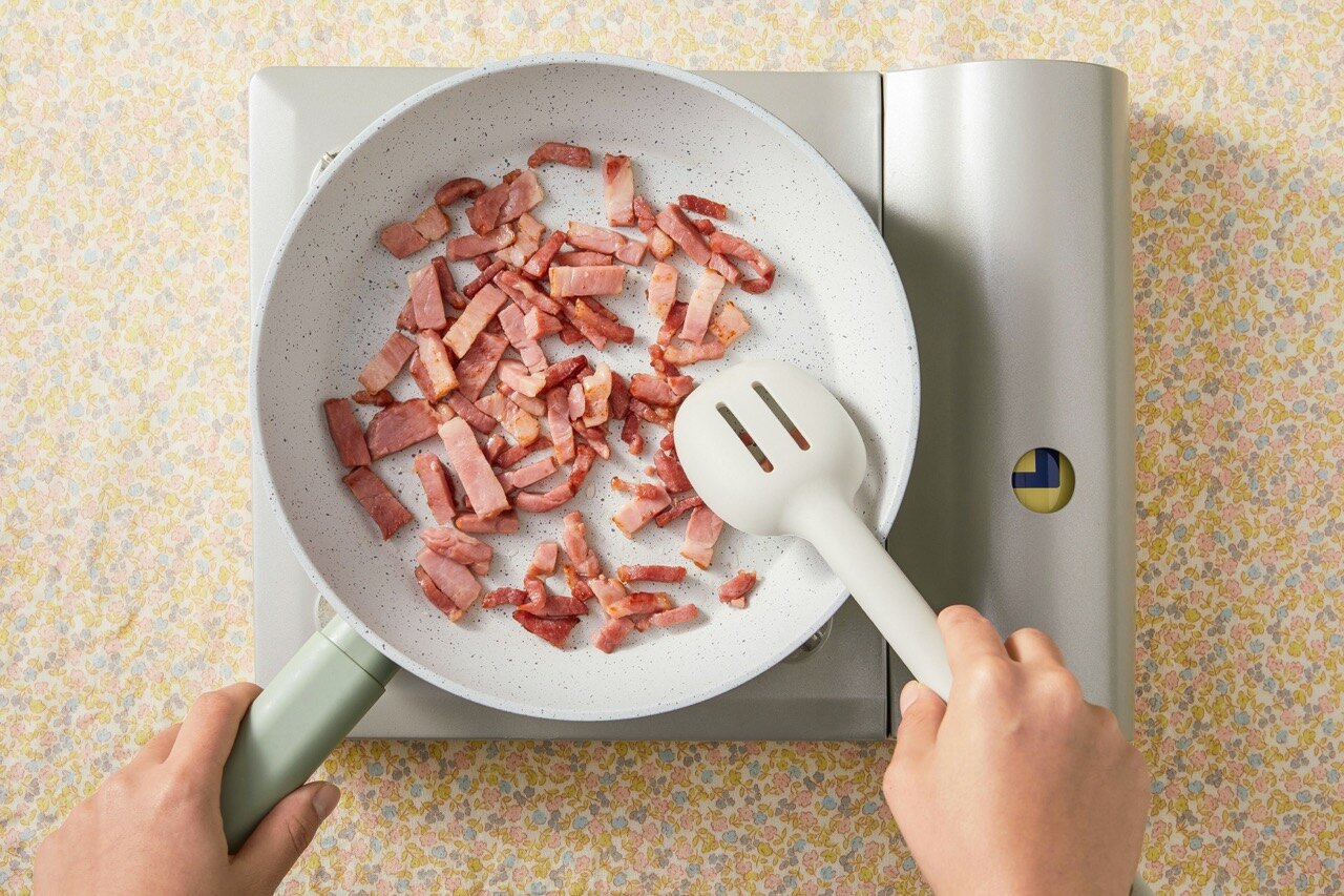베이컨은 너무 바삭하지 않게 볶아 준비해 주세요.
